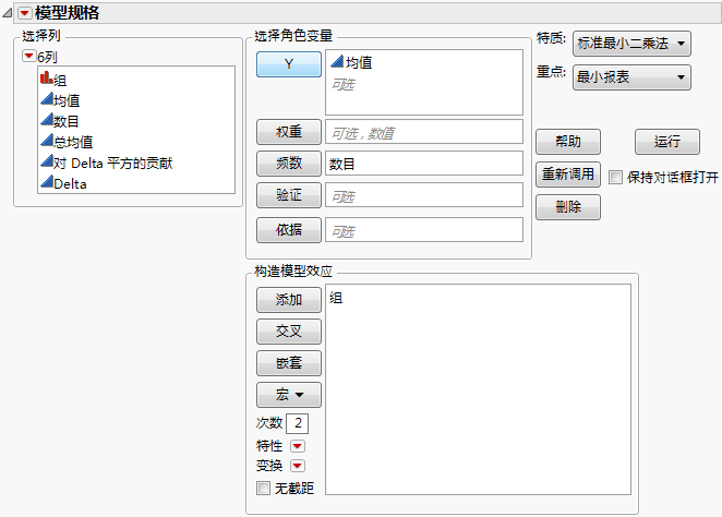 是按照总体参数指定的所检验假设的平方和,n 是观测总数。若提供了观测数,则将针对假设计算的平方和代入 δ 的公式来计算估计的效应大小。