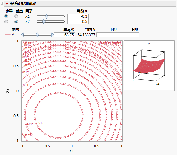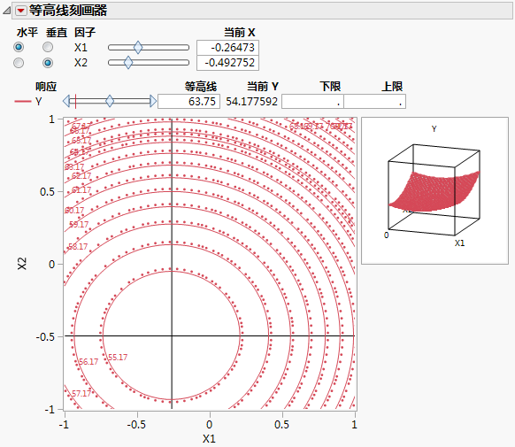 点击“响应 Y”红色小三角并选择因子刻画 > 等高线刻画器。