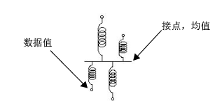 首先,弹簧是连续响应模型的拟合装置 (Farebrother 1987)。假定您有 n 个点,想知道这些点的期望值(均值)。设想您将点排列在标尺上并使用弹簧将它们连接到公共接头(请参见图 A.7)。当您放开弹簧时,弹簧上下摆动接点,然后在均值处停下来。根据物理学原理,这是必然发生的事。
