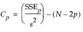 其中 s2 是完全模型的 MSE,SSEp 是具有 p 个变量(包括截距)的模型的误差平方和。请注意,p 是 x 变量数+1。若使用 p 对 Cp 绘图,Mallows (1973) 建议选择 Cp 首次接近 p 的模型。