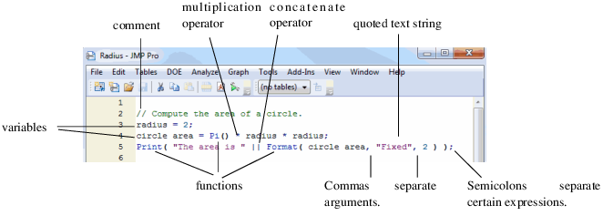 Studying the syntax and basics of JSL is crucial, whether you are a beginning or an advanced user. Some concepts (such as loops and variables) are common among many scripting languages, but punctuation rules differ in JSL.