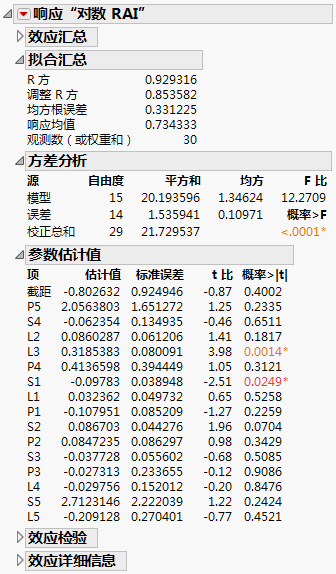 图 15.6 包含所有连续预测变量的模型的“拟合最小二乘法”报表