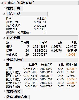图 15.7 聚类成分作为预测变量的模型的“拟合最小二乘法”报表