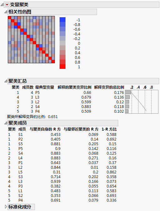 图 15.5 Penta.jmp 的“聚类变量”报表