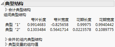图 5.14 Iris.jmp 的“典型结构”(显示组间典型结构)