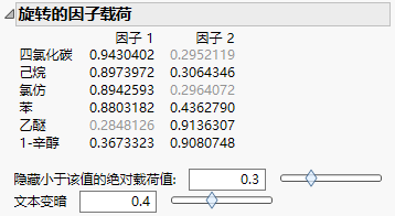 图 8.8 带有文本变暗控件的旋转的因子载荷