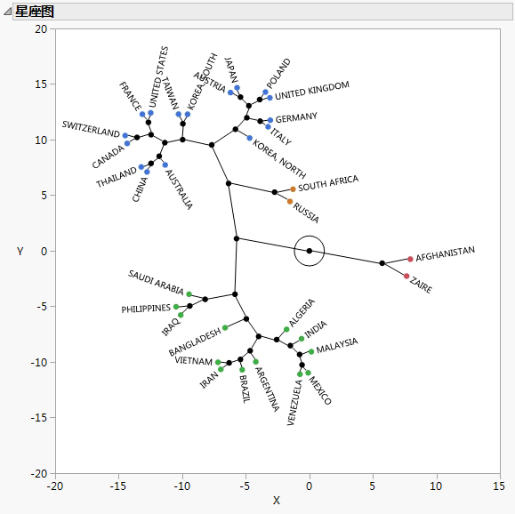 该选择可确保国家列(而不是行号)用于对点击“确定”后出现的系统树图添加标签。