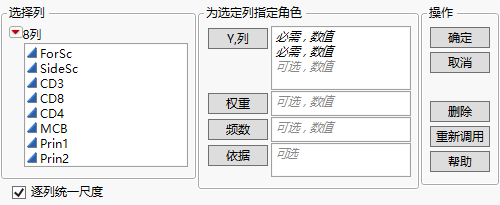 独立于其他列调整每列的尺度。在变量不共享相同的测量值尺度,而您不希望一个变量支配聚类过程的情况下使用。例如,一个变量具有介于 0 和 1000 之间的值,而另一个变量具有介于 0 和 10 之间的值。在这种情况下,您可以使用该选项,以便聚类过程不被第一个变量所支配。