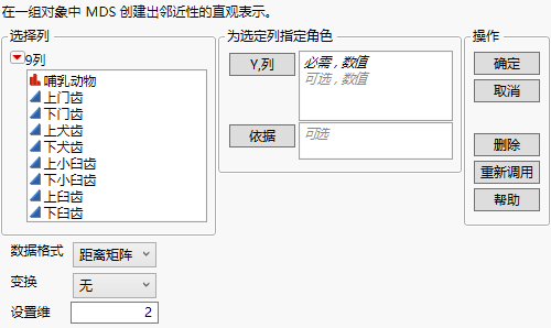选定的维可介于 1 到 n - 1 之间,其中 n = 对象数,否则维设置为 2。