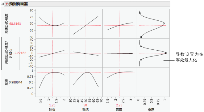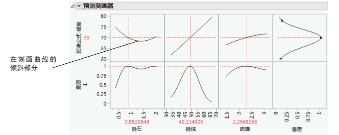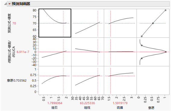 图 3.25 显示“硬度”对“硅石”的最小值的预测刻画器