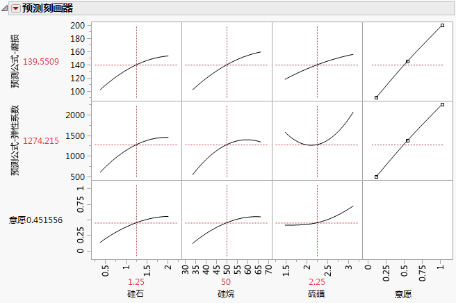 一词旁边的数值是意愿测度的几何均值。图中的这一行显示由于一次更改一个因子而生成的当前意愿和意愿迹线。