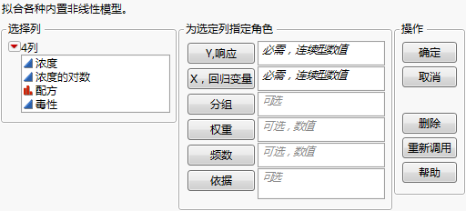 指定分组变量。分组变量的不同水平下的拟合模型包含不同的参数。这样您就可以比较分组变量各水平下的拟合模型和估计参数。