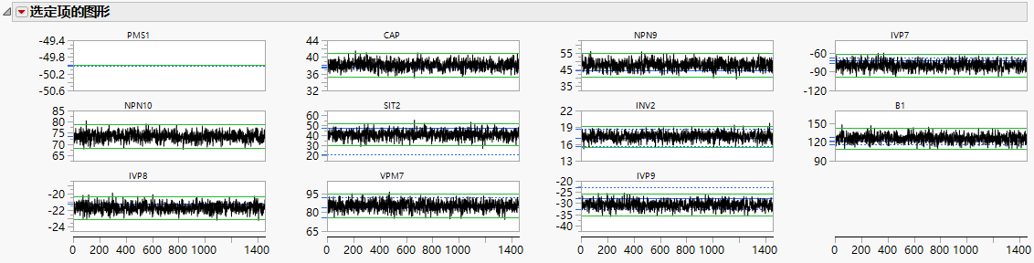 Semiconductor Capability.jmp 样本数据表包含 128 列过程测量值。每个列包含 1,455 个测量值。您想确定哪些过程不稳定。此外,每个列包含“规格限”列属性。若过程稳定,则适合计算过程能力。接下来针对该数据表您要评估过程的稳定性和能力。