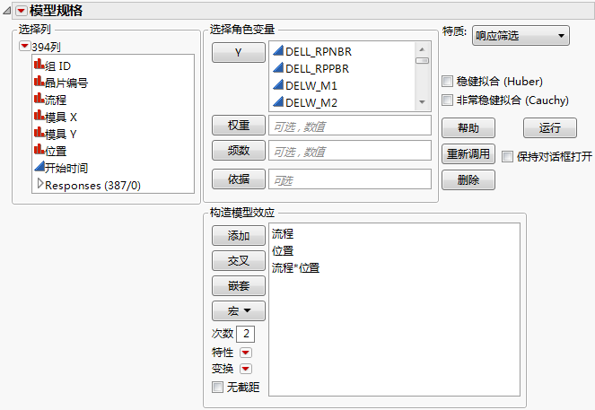 。输入您的 Y 变量和模型效应。从“特质”列表中选择