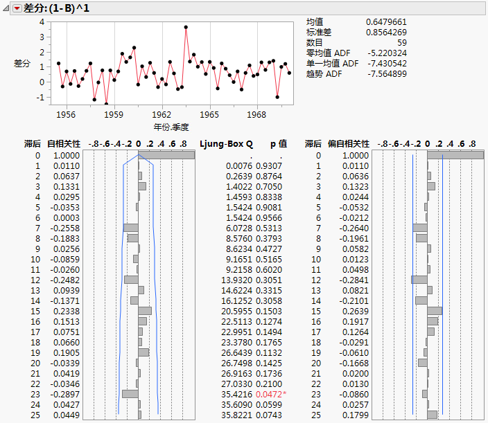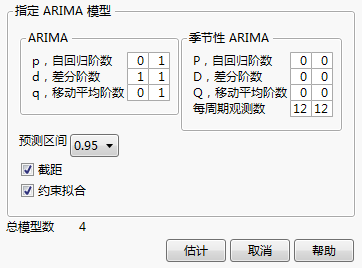 通过设置范围 0 到 1,将差分阶数 d 固定为 1,因为差分报表已显示“滞后-1”差分是合适的。