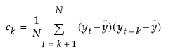 是时间序列中 N 个非缺失点的均值。按照定义,第一个自相关性(滞后 0)始终具有长度 1。自相关图以条形图的形式来表示自相关系数的大小。蓝色曲线表示两倍的 Large-lag 标准误差(± 2 倍标准误差),其计算公式如下: