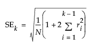 (对于所有 k)变差图测量相距 k 个滞后期的点差分的方差,并将它与相距 1 个滞后期的点差分的方差进行比较。变差图是从自相关性计算得到的,公式如下: