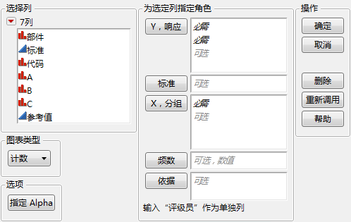 在变异性量具分析(对于连续响应)和计数量具分析(对于分类响应,通常为“通过”或“失败”)之间作出选择。