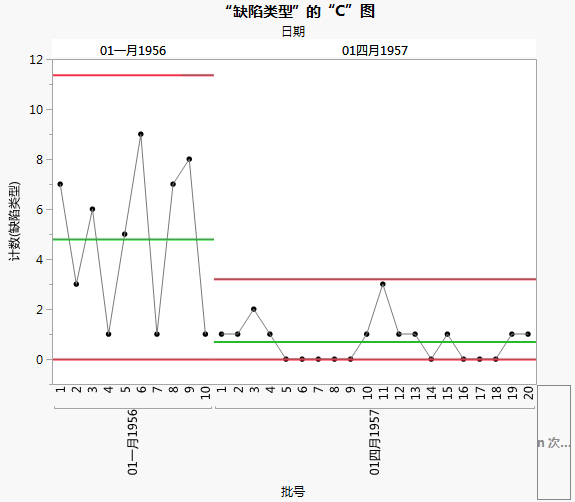 图 3.21 带有阶段的“缺陷类型”的 c 图