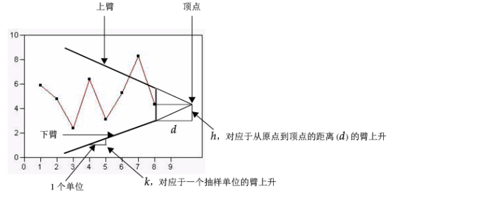 图 6.6 双侧 CUSUM 图的 V 形模板