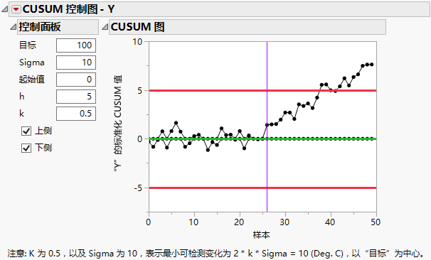 选择分析 > 质量和过程 > CUSUM 控制图。