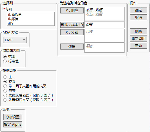 通过选择分析 > 质量和过程 > 测量系统分析启动“测量系统分析”平台。