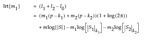 似然比检验统计量将 l1 + l2 的和与 l0 进行比较。l1 + l2 的和是该对数似然的两倍,后者假定 m1 处可能有偏移。值 l0 是假定无偏移的对数似然的两倍。若 l0 远小于 l1 + l2,则假定过程是不稳定的。