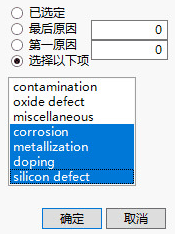 您可以通过点击某个直条将其突出显示。使用 Ctrl+点击可选择多个不相邻的直条。选择直条后,您可以访问红色小三角菜单上影响 Pareto 图直条的命令。这些选项位于红色小三角菜单上的原因子菜单中。右击图区域中的任意位置后也会提供这些选项。以下选项适用于突出显示的直条而不是整个图: