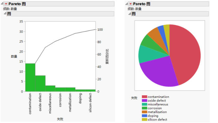 使用 Pareto 图改进过程或操作的统计质量。Pareto 图是一个显示与质量相关的过程或操作中的问题严重性(频率)的图。Pareto 图可通过突出显示问题的频率和严重性,帮助您决定要首先解决的问题。