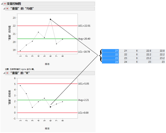 图 4.18中的箱线图显示第六个样本具有小范围的高值。