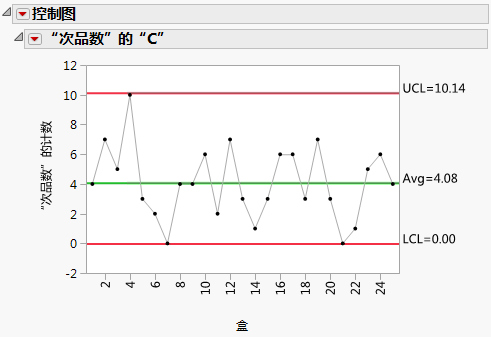 选择分析 > 质量和过程 > 控制图 > C。