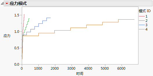 “应力模式”报表为每个应力模式 ID 显示一段时间内的应力水平图。该报表中的“模拟”选项支持您模拟新数据。