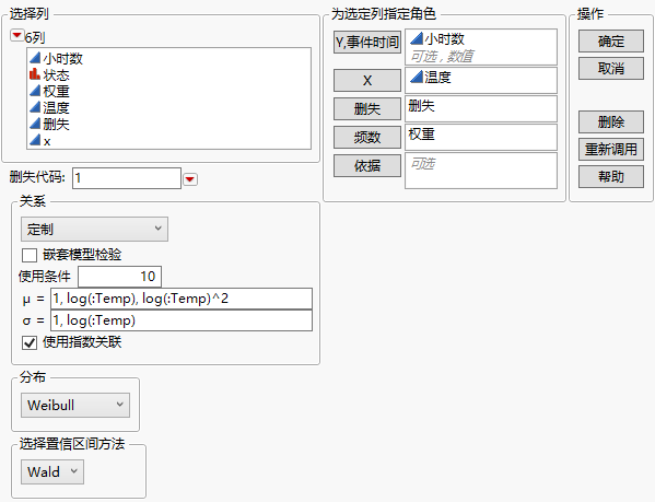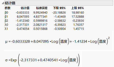 在 σ 的输入字段中,输入“1, log(:Temp)”。