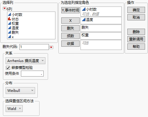 选择分析 > 可靠性和生存 > 以 X 拟合寿命。