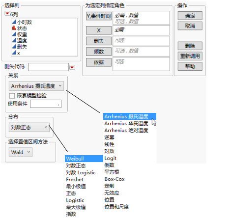 标识事件与加速因子之间的关系。关系模型选项定义每种关系的模型。