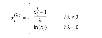 若您选择 Box-Cox,文本编辑框显示在“使用条件”选项之下。使用该框可指定 lambda 值。指定的 λ 的 BoxCox( X ) 变换定义如下:
