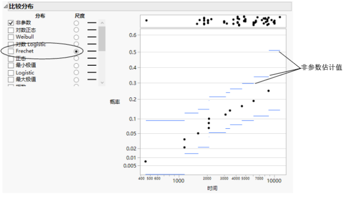 图 3.17 具有 Fréchet 概率尺度的非参数估计值