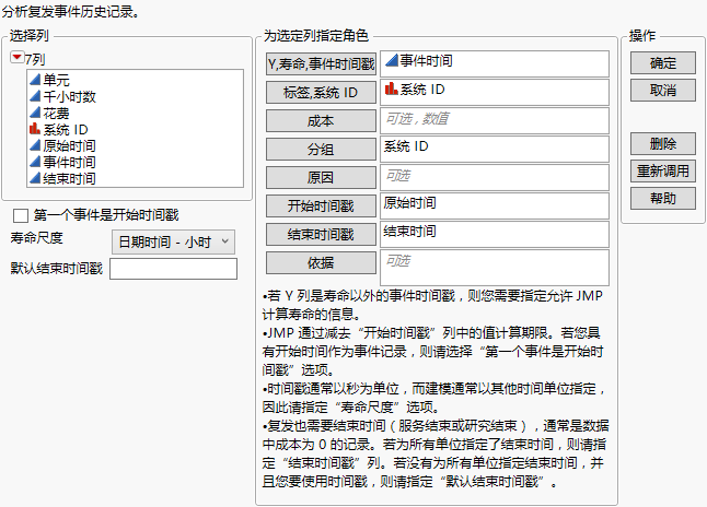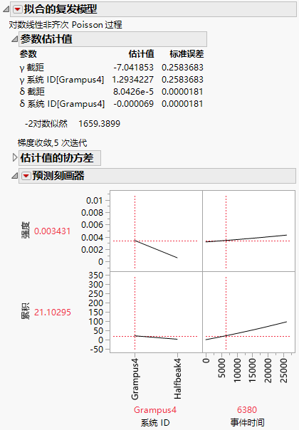 在“复发模型规格”中,选择对数线性非齐次 Poisson 过程。