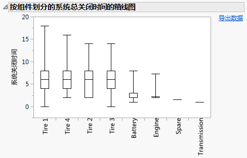 图 12.4 部分显示的“按组件划分的系统总关闭时间的箱线图”