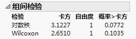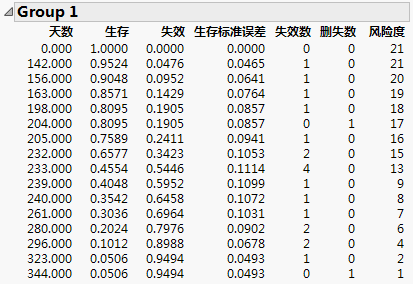 有多个组时,“组间检验”表会提供各组的齐性统计检验。Kalbfleisch and Prentice (1980, ch. 1)、Hosmer and Lemeshow (1999, ch. 2) 和 Klein and Moeschberger (1997, ch. 7) 讨论了生存曲线的统计量和比较。