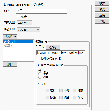 要添加“链接引用”列属性,请先选择该列,再选择列 > 列信息,然后从“列属性”列表中选择链接引用。输入主表的路径,然后点击确定。若您输入的路径正确,引用列会在您点击“确定”后显示在主表的“列”面板中。