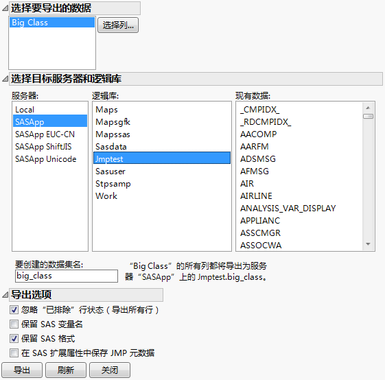 选择将生成的 SAS 数据集导入 JMP 选项。