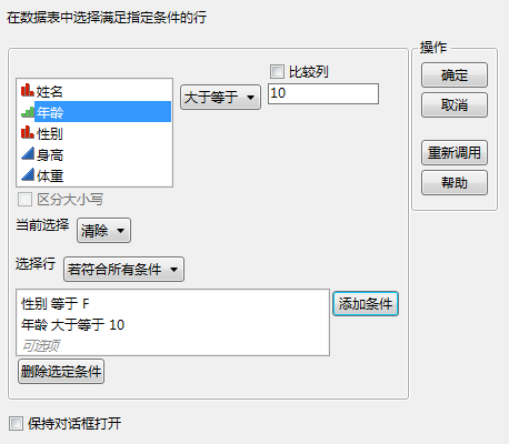 点击当前选择下的选项,指示 JMP 如何处理这一当前选择: