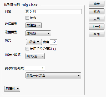 选择列 > 新建列。使用该选项添加一个或多个列并更改其特性。