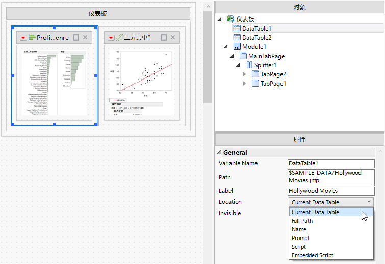 从任意 JMP 窗口中,选择文件 > 新建 > 仪表板。