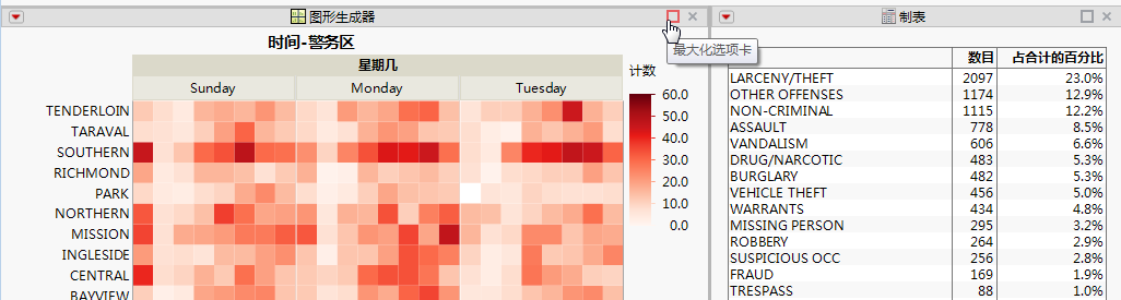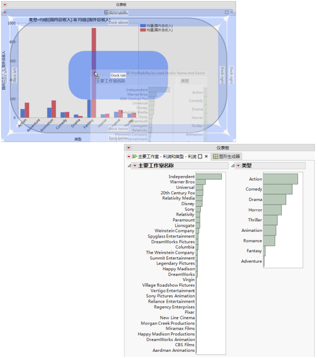 通过将报表拖入突出显示的拖放区,您可以重新排列运行的仪表板中的报表。拖放区指示您可以放置报表的位置。图 11.9显示将报表移入选项卡的示例。“分布”报表将放在“停放选项卡”拖放区内,以便放入第一个选项卡。