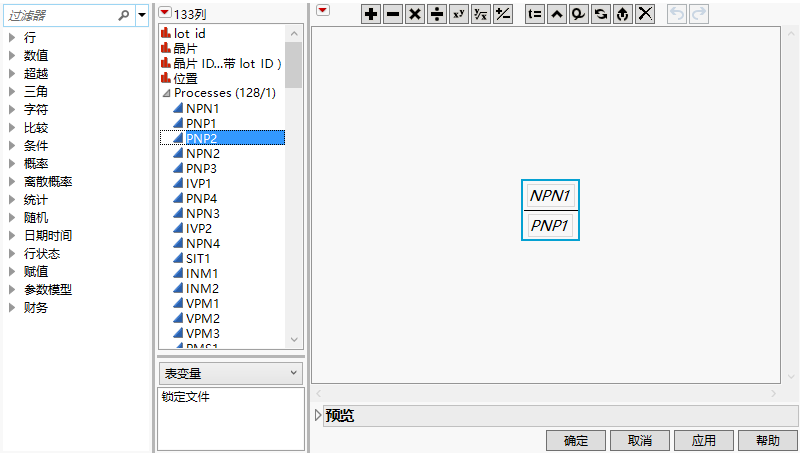 “列”菜单中的“标准化特性”选项提供了一种方法,可以在复制列公式的同时递增公式中的每个列引用。该选项可以替代手动创建新的列公式(其中的列在每个后续列中递增 1)的方法。例如,若列 B 包含公式 Ax2,则标准化列 C 将包含公式 Bx2,并且标准化列 D 将包含公式 Cx2。