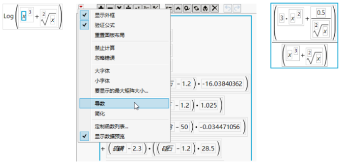 JMP 公式编辑器可以查找并显示函数的导数。找到的导数是相对于您突出显示的函数参数(单个变量名)。因此,为了相对于 x 求导,x 必须是表达式中的一个参数。小键盘旁边的红色小三角菜单包含“导数”命令。