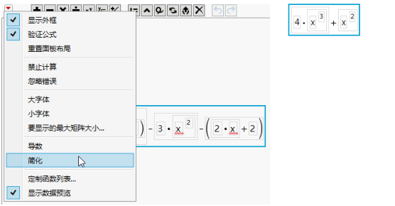 选择“简化”(左侧)将生成简化的公式(右侧)