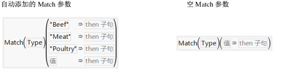 在自动填充的参数中,您应突出显示 then 子句,然后输入表达式。在空参数中,您突出显示 expr、value 或 then 子句,然后输入表达式。(或者,若您突出显示一个表达式,然后点击 Match,则“公式编辑器”创建新的 Match 条件,其中原始突出显示的表达式作为 expr 且不为 value 和 else 子句赋值。)另外,请记住: